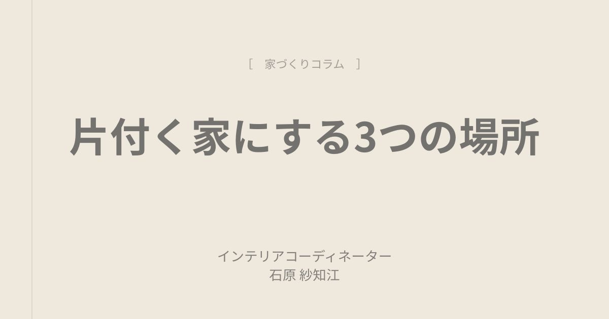 今回は、「片付く家」にするために、家づくりの最初に考えておきたい3つの場所についてお伝えします。