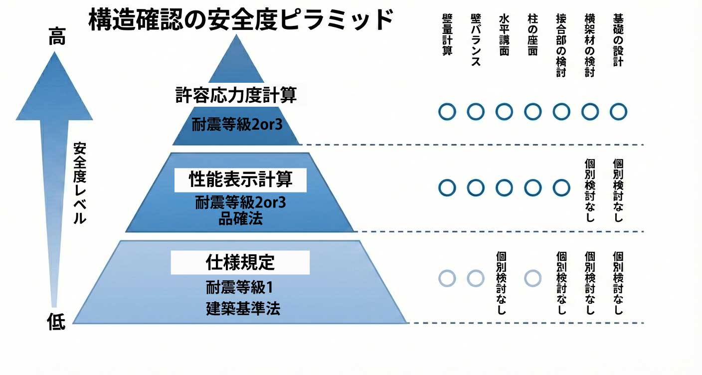つまり仕様規定は、「標準的な家」を想定した安全の入口であって、自由度が上がるほど、説明できない領域が増えていきます。