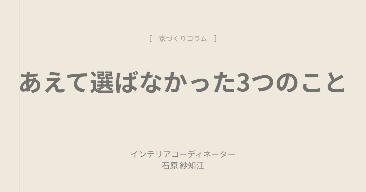 今日は私たち家族が家づくりの時に”あえて選ばなかった”ことについて、お話しします。